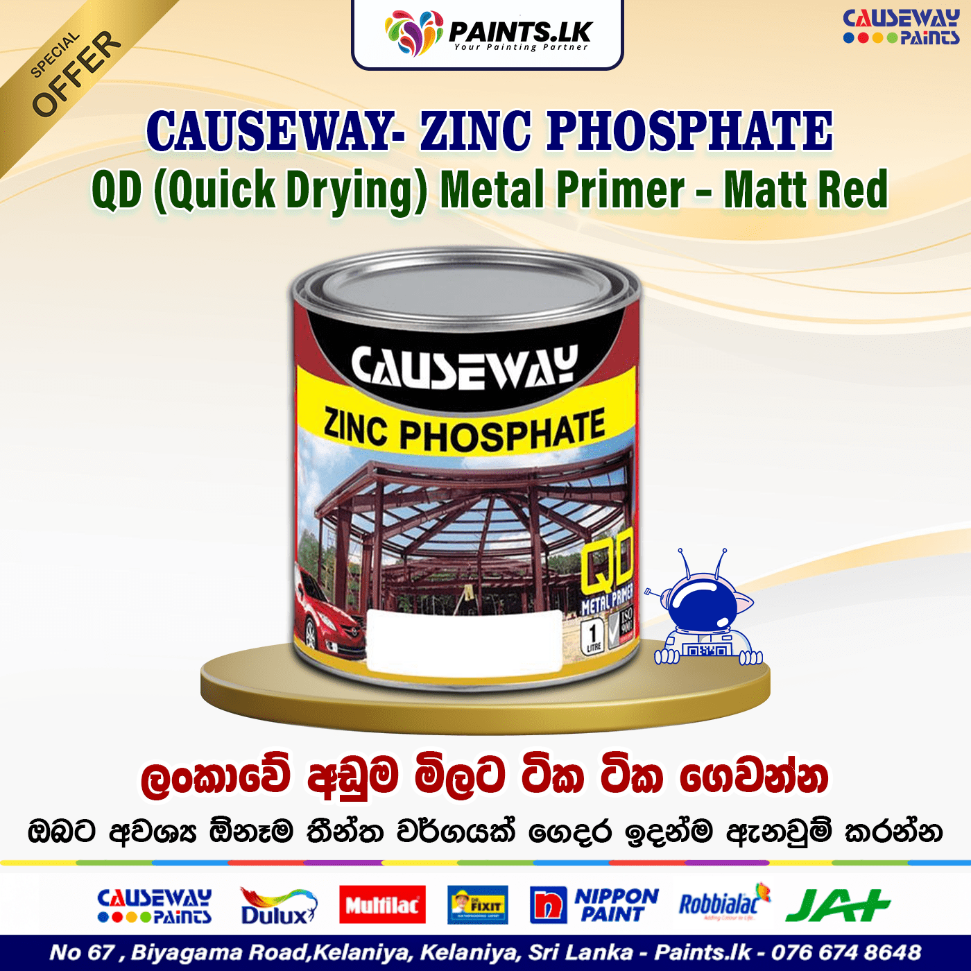 Causeway- Zinc Phosphate Metal Primer – Matt White is a quick drying modified alkyd resin based primer which has easy sanding properties & possess anticorrosive property along with matt finish surface to, top coat to adhere onto.