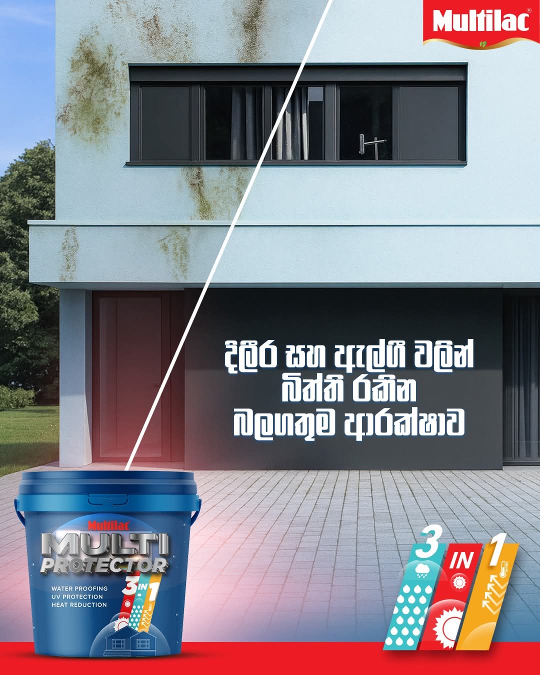 MULTIPROTECTOR 3IN1 SUPERIOR PAINT is a premium quality, high-performance water- based coating specially formulated for roofs and exterior walls exposed to extreme weather conditions. It offers superb elongation, excellent waterproofing, superior tensile strength, advanced UV protection, and outstanding heat reduction properties. The product is further enhanced with anti-fungal and anti-algae properties, ensuring long-lasting surface protection. It is low VOC, Lead Safe certified, and manufactured using light-fast pigments for exceptional colour durability.